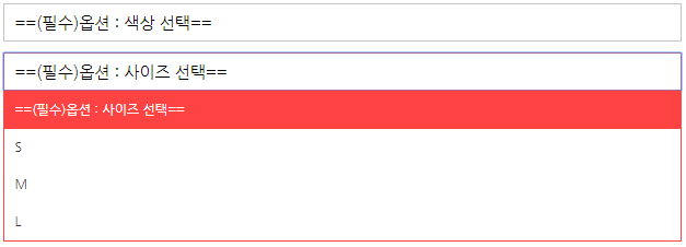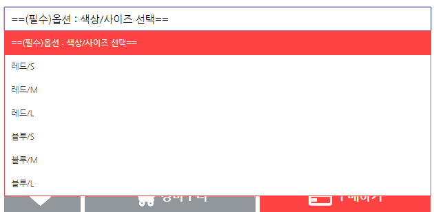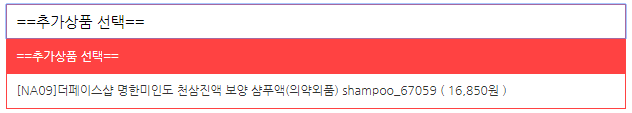 프론트에서는 셀렉트박스로 세팅된 추가상품을 선택합니다.(다중선택가능)