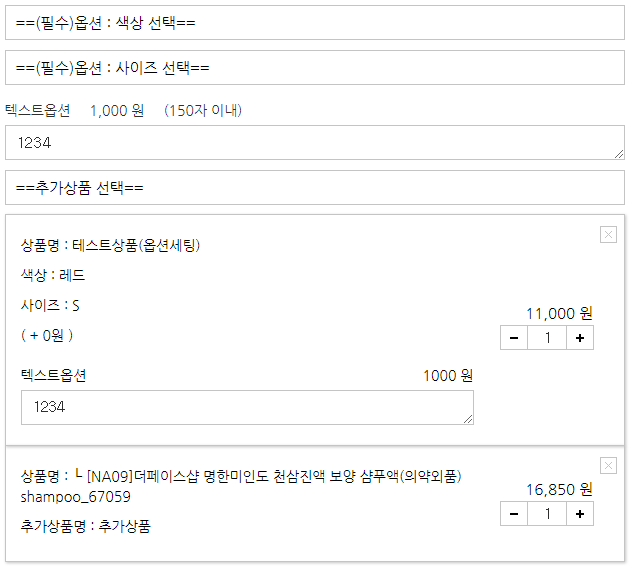 캡쳐하단에 추가상품도 같이 표시해놨습니다. 본상품과는 별개로 표시됩니다.
