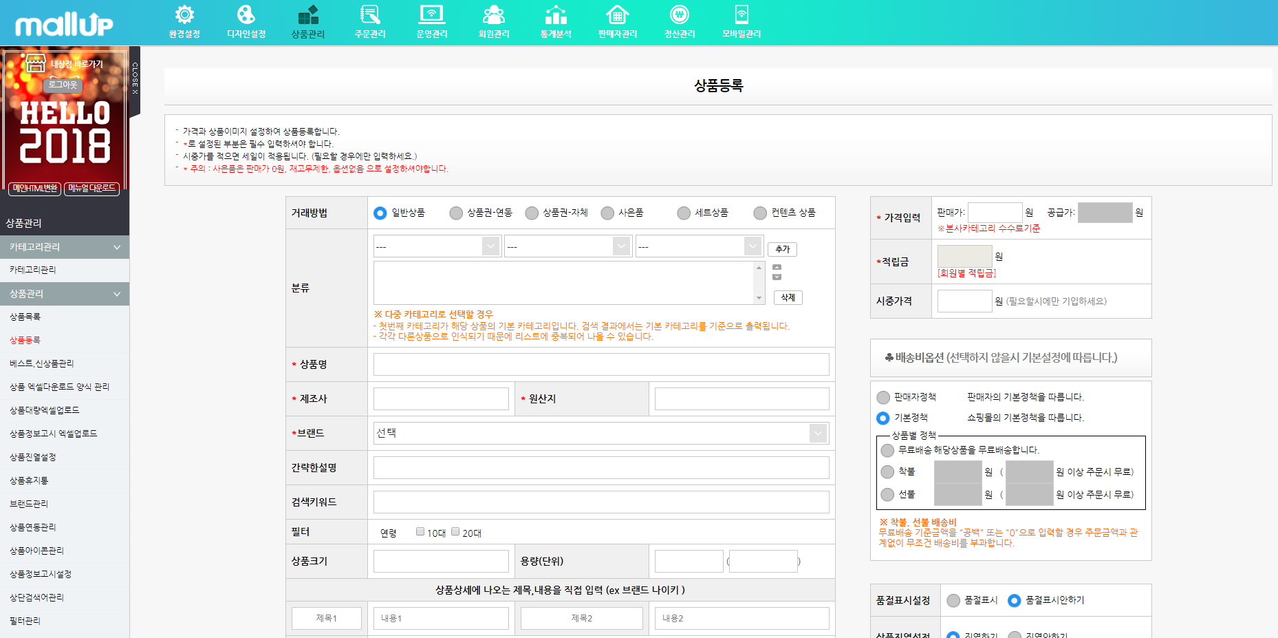 솔루션관리자 상품관리-상품등록 부분입니다. 해당 텍스트 "클릭"하면 해당페이지로 이동합니다.